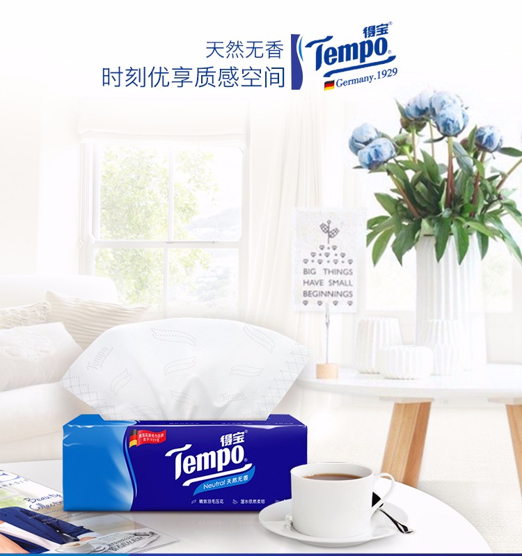 Tempo/得宝 抽纸 四层90抽*18包纸巾 中规格(中幅)(天然无味)(整箱销售)